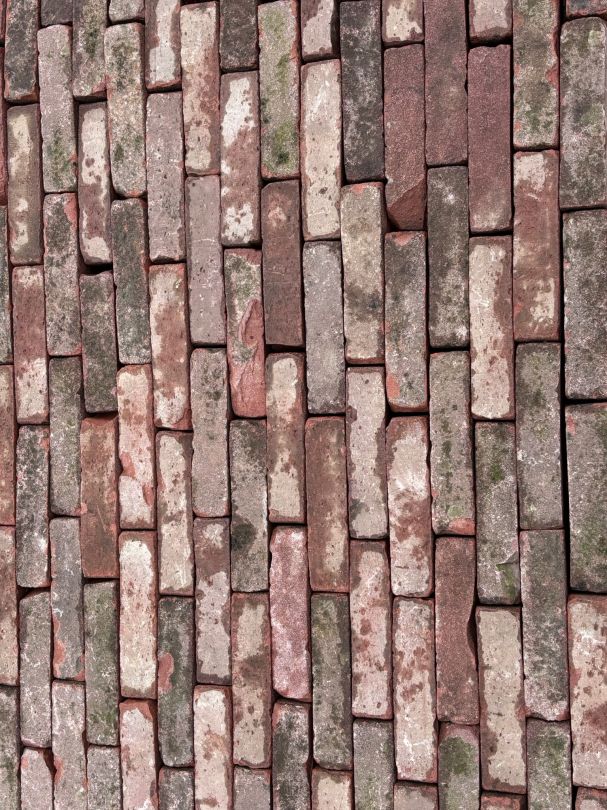 P074, Oude Gebakken Klinkers, Vierlingen, Rood-Bruin