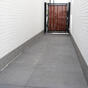 Voor keramische tegels van 3 cm dik vul je het uitgegraven gebied met straatzand en ondergrondversteviger en egaliseer je dit zorgvuldig. Stevige opsluitbanden rondom het terras zorgen voor extra stabiliteit en een strakke afwerking.
