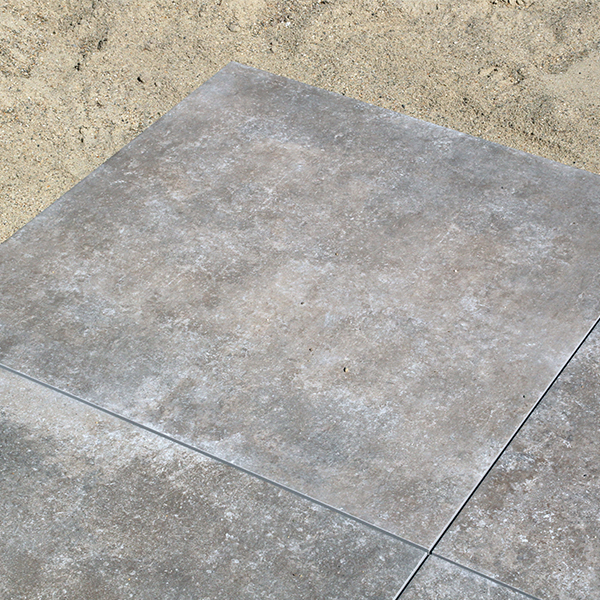 Voor keramische tegels van 3 cm dik vul je het uitgegraven gebied met straatzand en ondergrondversteviger en egaliseer je dit zorgvuldig. Stevige opsluitbanden rondom het terras zorgen voor extra stabiliteit en een strakke afwerking.