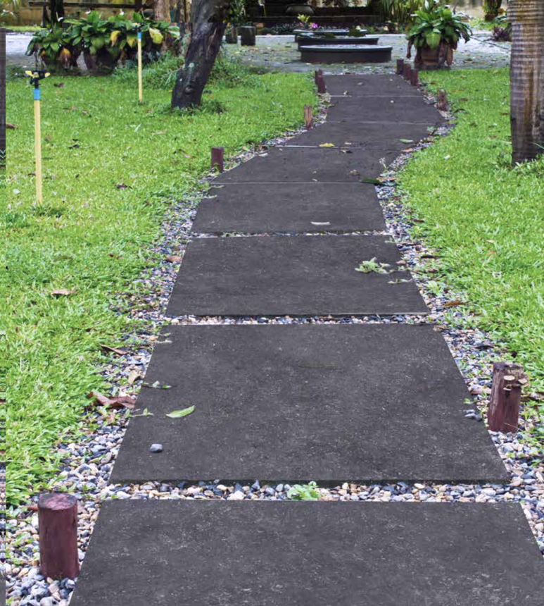 Voor keramische tegels van 3 cm dik vul je het uitgegraven gebied met straatzand en ondergrondversteviger en egaliseer je dit zorgvuldig. Stevige opsluitbanden rondom het terras zorgen voor extra stabiliteit en een strakke afwerking.