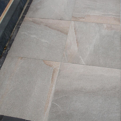 Voor keramische tegels van 3 cm dik vul je het uitgegraven gebied met straatzand en ondergrondversteviger en egaliseer je dit zorgvuldig. Stevige opsluitbanden rondom het terras zorgen voor extra stabiliteit en een strakke afwerking.