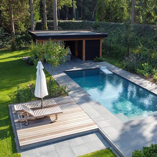 Voor keramische tegels van 3 cm dik vult u het uitgegraven gebied met straatzand en ondergrondversteviger en egaliseert u dit zorgvuldig. Stevige opsluitbanden rondom het terras zorgen voor extra stabiliteit en een strakke afwerking.